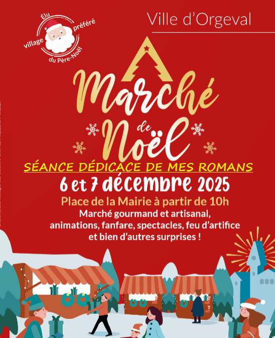 Je serai présent au Marché de Noël d’Orgeval, Yvelines, les 6 et 7 décembre pour présenter mes derniers romans.